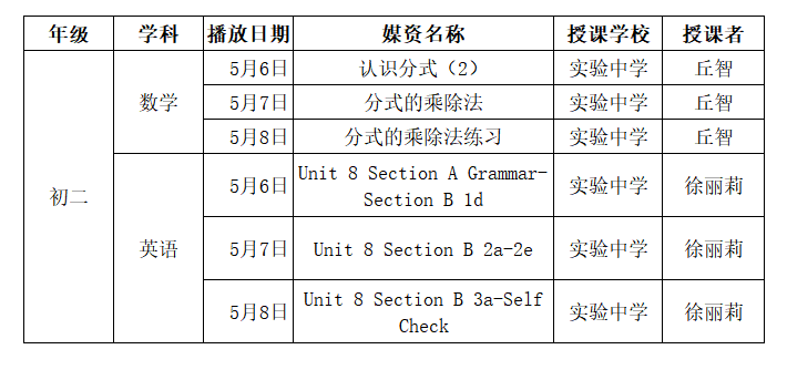 蕉岭县教育局推出“蕉岭课堂”线上教育5月6-8日节目播出单,节目将在蕉岭县广播电视台、电信IPTV、移动IPTV同步播出,请同学们留意收看: