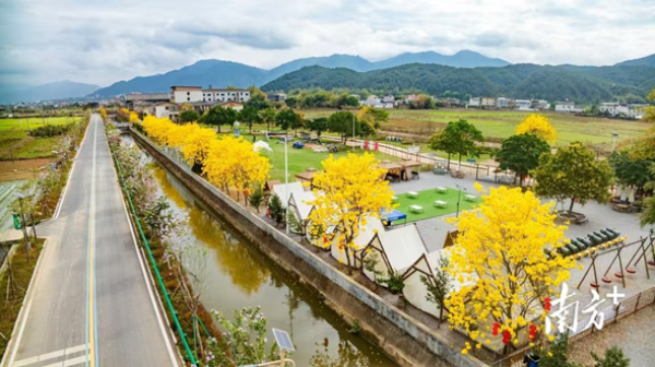 在三圳镇九岭村,游客们不仅可以欣赏到美丽的田园风光,还可以带着孩子一起游玩,尽情感受田园之美、亲子之乐。